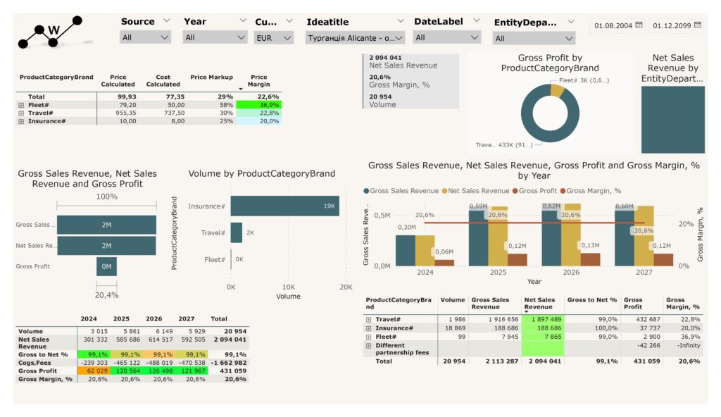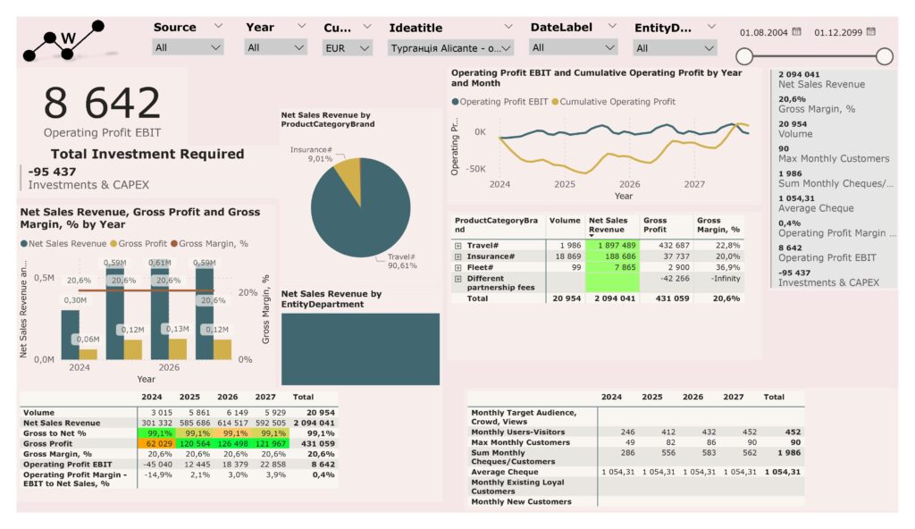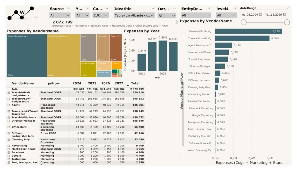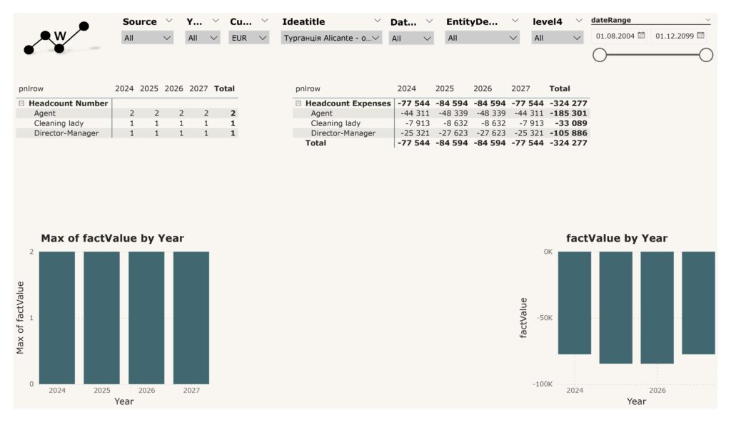 This action precisely transforms the ephemeral branched settings of the parameters of the business plan from the calculator into the format of analytical flat data, which can be easily used in any programs – Excel, Power Bi, integration.